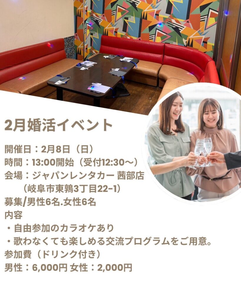 | 参加費(ドリンク付き) | 男性:6,000円 女性:2,000円 |