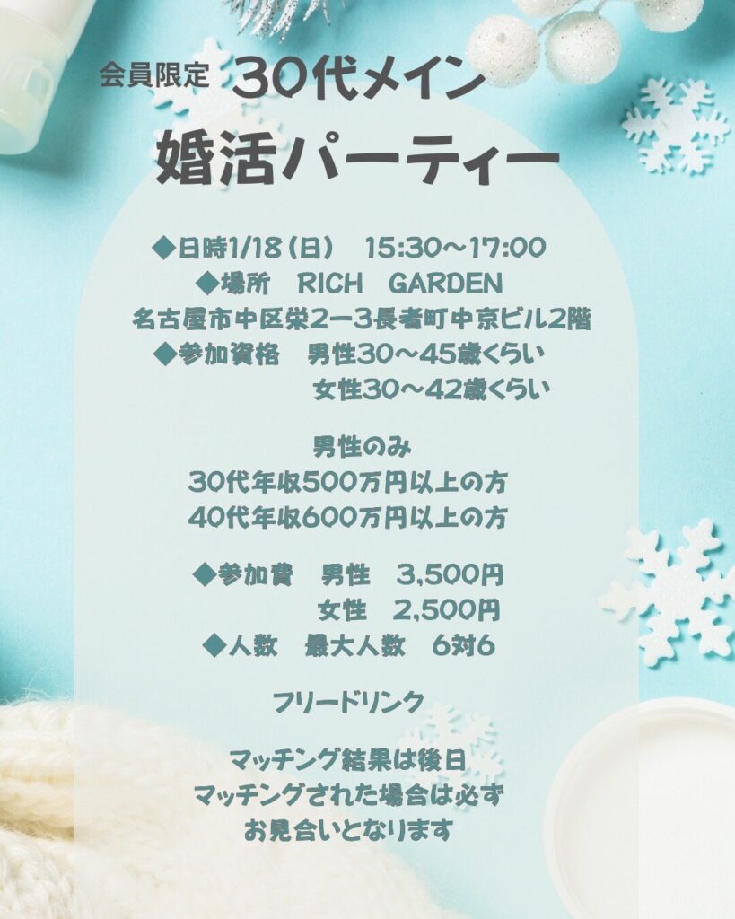 | イベント名 | 会員限定 30代メイン 婚活パーティー |